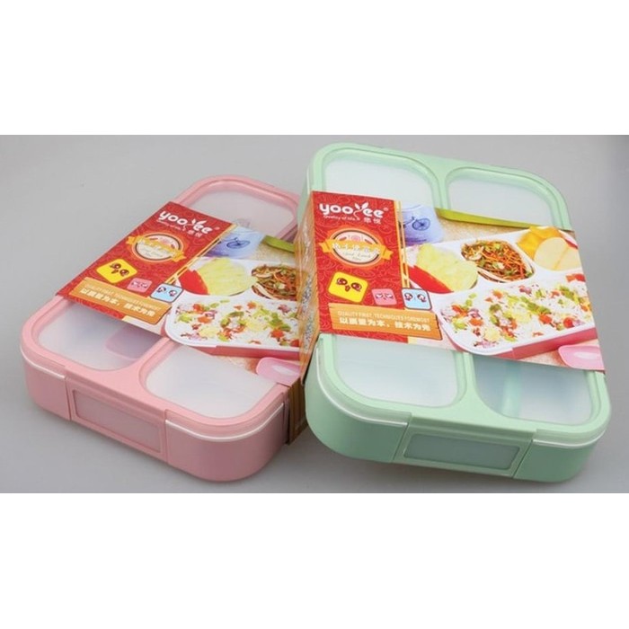 Yooyee 578 Lunch Box 4 Sekat | Kotak Makan | Kotak Bekal (Anti Tumpah)Ready warna :* Hijau* Pink"Tambahkan keterangan warna saat order, jika tidak ada keterangan warna akan kami kirim warna random"Dimensi (PxLxT) = 23 x 17 x 4,6 cm (1000 ml)- Ditutupnya terdapat karet antar sekat, sehingga makanan tidak bercampur- Bahan plastik tebal BPA Free- Tahan panas sampai 120 degC- Dilengkapi sendokKelebihan:1. Terbuat dari bahan yang berkualitas untuk makanan, aman dan tidak membahayakan2. Tidak berbau plastik bahkan menggunakan air mendidih di dalamnya4. Bahan berkualitas yang tahan terhadap panas atau dingin5. Dapat digunakan untuk pemasanan menggunakan microwave, menyimpan pada kulkas, dan mesin cuci piring (Dishwasher)6. Tahan panas sampai