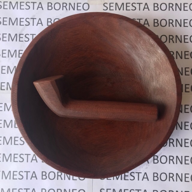 Cobek terbuat dari bahan kayu Ulin/ bulian atau disebut juga kayu besi yang merupakan kayu khas Kalimantan yang terkenal keras dan kuat serta tahan terhadap air laut dan anti r