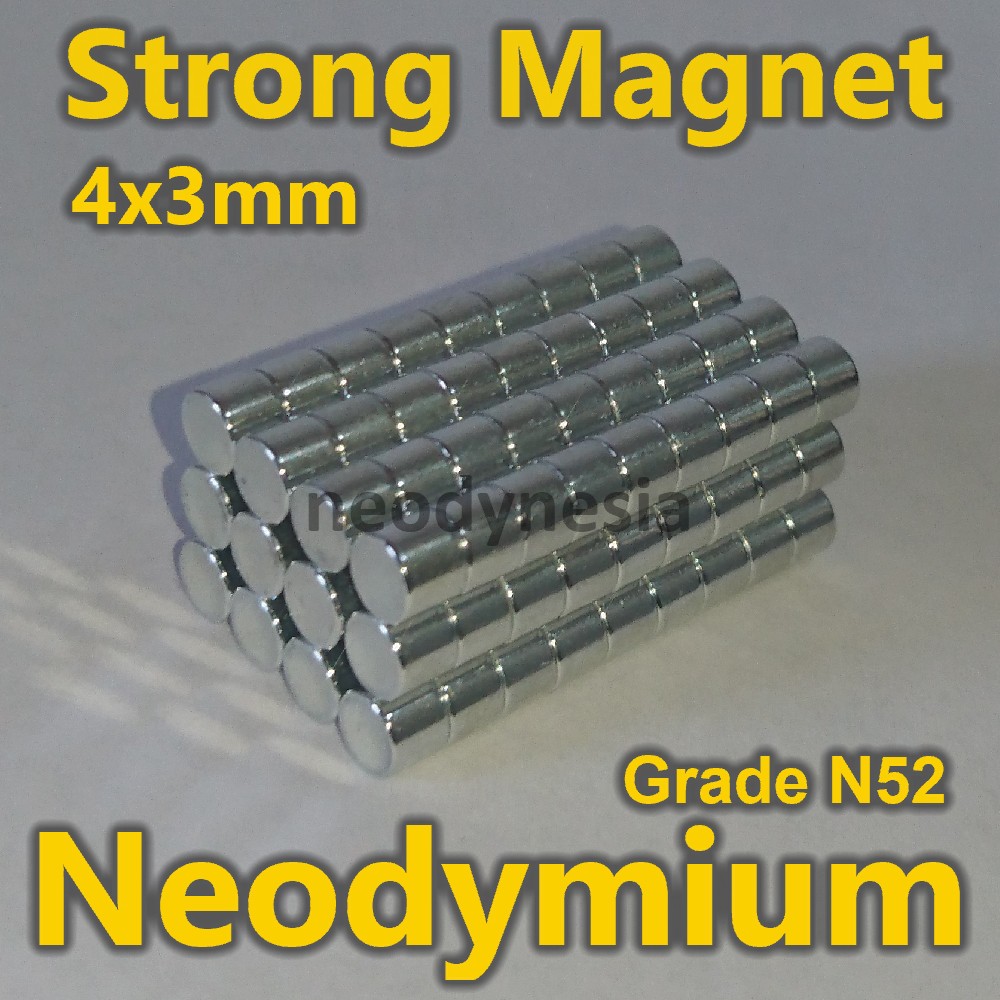 Magnet Neodymium Impor, Grade N52(Grade tertinggi Magnet Neodymium). Standard RoHS Dijamin sangat kuat!!!Harga untuk 1 (satu) pcsSpec :Neodymium Grade N52 Cylinder/Silinder/Bulat/KoinMaterial : NeodymCoating: Nickel (Ni-Cu-Ni)Magnetisation Grade : N52Max Temp : 80 CMagnetisation Direction : AxialTinggi: 3 mmDiameter :4 mmToleransi: 0.1 mm#neodymiumN52 #4x3 #strongmagnet #rareearthneodymium #size4x3mm