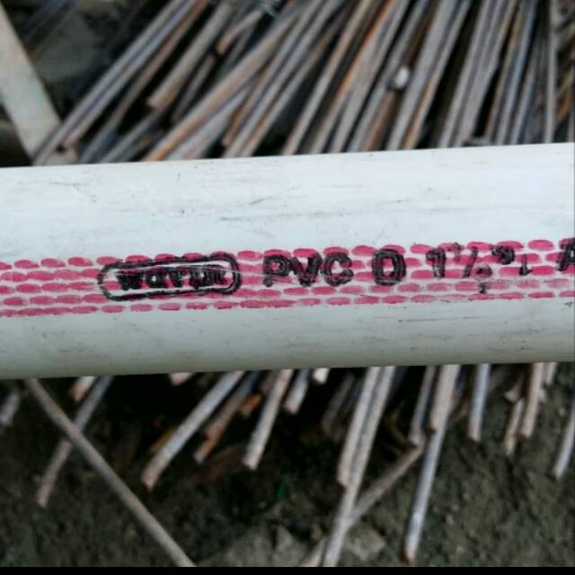 Pipa PVC-"ukuran D 1 1/2"- dijual per 1 meter- lis merah ( wavin / wavin ruc