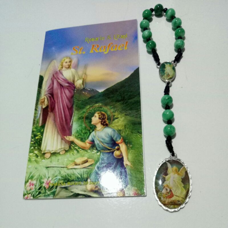 Rosario Rafael dibuat batu alam asli 8 mm. sangat adem dalam genggaman. Semua dirangkai dengan tali nilon yang kuat. Selamat berdevosi. Harga sudah termasuk lembaran doanya. Semoga semua pelanggan berbahag