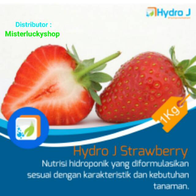 Apa itu Hydro J :Nutrisi Hydroponik siap pakai, mengandung unsur hara yang dibutuhkan tanaman, dengan bahan - bahan yang mudah diserap dan 100% larut Air, sehingga tidak akan menyumbat sistem fertigasi tetesCara Membuat Pekatan :Larutkan Kantong A dalam Botol A menjadi 2.5L, dan kantong B plus unsur micro (warna hijau) dalam botol B menjadi 2.5L, Kocok sampai benar - benar larutPembuatan Larutan Siap Pakai :Semai : Larutkan 3ml pekatan A dan 3ml pekatan B dengan 1L air bersihVegetatif : Larutkan 5ml pekatan A dan 5ml pekatan B dengan 1L air bersihGenetatif : Larutkan 7ml pekatan A dan 7ml pekatan B dengan 1L air bersihKandungan dan Jenis :Unsur Makro : N,P,K,Ca,Mg dan SUnsur Mikro :Fe,Mn,Bo,Zn,Cu,dan MoEC : 2,27#HydroponicNutrient#Nutrisistrawberry#Misterluck