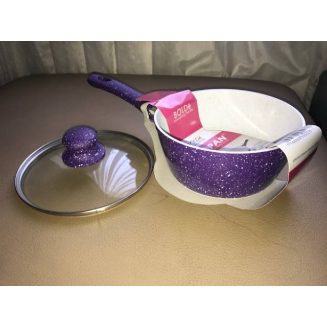 Super PAN original BOLDe PurpleDalam paket : 1 sauce pan 18cm dan penutup kaca premium.Dropship are welcome- Best Quality Cookware Products.- ECO GREEN Technology Product.- Technology yang ramah lingkungan dan tidak mengandung bahan kimia berbahaya.- BEIGE Color Luxury Design.- Mudah dibersihkan.- Peralatan masak anti lengket berkualitas tinggi dengan coating bahan granite.-Ketahan 3 kali dr panci Teflon biasa.- Tebal panci 3 mm ( 2x lebih tebal dari merk lainnya).- 1 pc Sauce Pan dia. 18 cm, tinggi 8 cm dan panjang handle 17 cm.- Handle pan dilengkapi lubang untuk menggantung.- 1 pc Penutup Sauce Pan bahan kaca yang dilengkapi lubang pembuangan udara.- Dapat digunakan pada kompor gas atau induksi (kompor listrik).- Induction Bottom menjaminan pemanasan yang merata ke seluruh permukaan.- Cocok untuk memasak mie instan, soup serta masakan lainnya dengan higienis.PERHATIAN:- Gunakan busa spon lembut saat membersihkan.- Dilarang menggunakan tapas karena merusak lapisan Granite Cer
