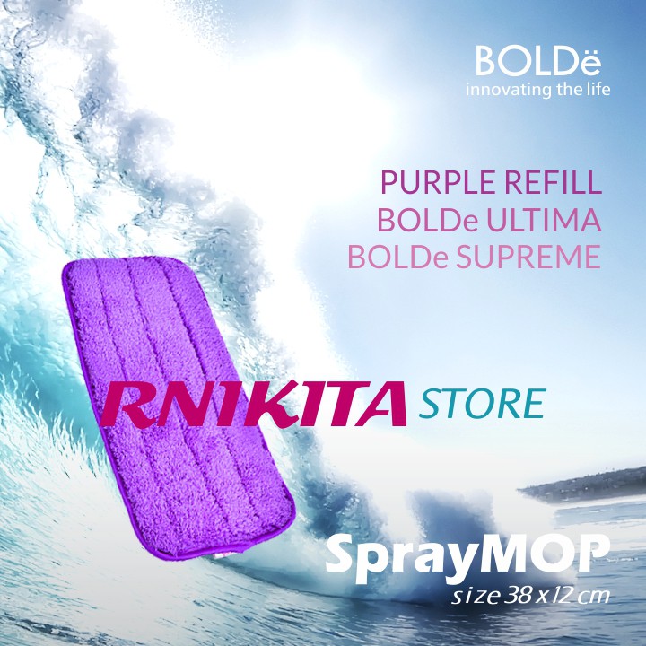 BOLDe KAIN PEL ULTIMA SUPREME - Refill Spray Mop* Tidak bergaransi.* Kerusakan fisik akibat pengiriman tidak ditanggung oleh penjual.* Kerusakan fungsi akibat kelalaian penggunaan tidak ditanggung oleh penjual.* Dibantu pengurusan klaim kerusakan ke jasa agen pengiriman.* Melayani sistem penjualan dropship.- Melekat dengan kuat pada velcro strip di pad Spray MOP pel Anda.- Tahan lama dan dapat digunakan kembali setelah dicuci bersih.- Refill bisa dicuci dengan mesin cuci hingga 100 kali.- Terbuat dari bahan 80% polyester dan 20% polyamide.- Aman dan dapat membersihkan tanpa tambahan pembersih kimia apapun.- Kain micro fiber dirancang sebagai perlindungan antimikroba.- Refill microfiber dapat membersihkan 50% lebih banyak kotoran debu halus daripada menggunakan pel spons tradisional.- Sangat efektif membersihkan lantai kayu parkit, vinyl dan keramik.- Uk. kain microfiber 38 x 12 cm (lebih kecil dari type regular uk. 40 x 15 cm).- Tersedia warna PURPLE.- Jika tidak memilih warna dikirim berdasarkan persediaan yg ada.- Demo produk di YouTube: https://www.youtube.com/watch?v=4bDet-QZsS8Kelengkapan Paket:- 1 BOLDe KAIN PEL ULTIMA SUPREME - Refill Spray Mop.Berat paket: 150 grams.Distributor Resmi PT. BOLDe INDONESIA - 100% ASLI B