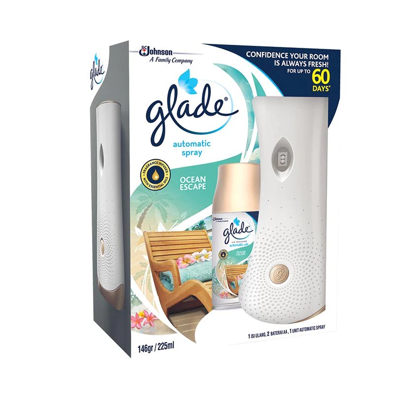 PERHATIANProduk ini mengandung aerosol dan baterai, hanya dapat dikirim di area JAWA (tidak dapat dikirim ke daerah yang mengharuskan pengirimannya melewati bandara)Isi Termasuk:- 1x Glade Automatic Device- 1x Glade Automatic Refill (Ocean Escape)- 2x AA BateraiRumah yang bersih dan wangi akan menciptakan suasana yang nyaman dan kondusif bagi keluarga. Anda dan keluarga pun dapat beraktivitas dan bersantai dengan nyaman. Untuk menciptakan rumah yang wangi, nyaman, dan juga menjaganya tetap segar sepanjang hari, diperlukan pengharum ruangan yang revolusioner yang dapat mengharumkan ruangan secara otomatis. Kini Glade menghadirkan inovasi baru untuk memberikan harum yang nyaman, tahan lama, dan alami secara otomatis pada ruangan di rumah ataupun kantor anda.Glade Automatic Device merupakan produk yang terdiri dari botol refill pengharum ruangan Glade, mesin yang bekerja otomatis menyemprotkan Glade pengharum ruangan, dan juga baterai yang berfungsi sebagai sumber daya dari mesin otomatis itu sendiri. Dirancang dengan inovatif sehingga mengharumkan ruangan secara otomatis dengan kesegaran alami yang tahan lama. Diformulasi dengan kandungan pengharum yang alami yang membuat aromanya aman untuk dihirup. Selain itu, pengharum dari Glade dapat menciptakan suasana menyegarkan sehingga membuat Anda beraktivitas dengan nyaman di dalam ruangan rumah ataupun kantor. Ketika pengharum sudah habis anda dapat menggantinya dengan kemasan botol refill Glade dengan aroma kesukaan anda lainnya.Rasakan kenyamanan dan kesegaran yang alami sepanjang hari di rumah atau kantor Anda. Dengan menggunakan Glade Automatic Device segala kebutuhan pengharuman ruangan anda menjadi alami, tahan lama, dan tidak diragukan lagi Karena aman digunakan. Dapat digunakan dengan botol refill dengan aroma