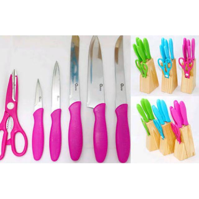 Oxone Set Pisau Biruadalah satu set pisau yang terdiri dari 5 pisau dan 1 gunting dengan gagang yang berwana merah muda yang dapat digunakan untuk memotong berbagai macam bahan makanan. Dilengkapi dengan raknya yang terbuat dari kayu. Produk buatan oxone ini sangat lengkap karena terdapat pisau dan gunting yang dapat membantu aktifitas Anda saat Anda berada didapur. Manfaat Set pisau ini berguna bagi Anda yang ingin mempermudah aktifitas Anda saat Anda ada didapur, karena kelengkapan yang tersedia seperti pisau untuk memotong dan gunting untuk menggunting bungkus-bungkus plastik makanan pada saat didapur. Tersedia dengan 3 warna Set Pisau ini terdapat 3 warna yang berbeda yaitu warna biru, hijau dan pink yang dapat disesuaikan dengan kondisi dapur Anda dengan warna yang tersedia pada set pisau ini. Gagang Plastik Dengan gagang plastik, pisau dan gunting ini sangat nyaman dan mudah untuk dipegang. Bahan plastik ini membuat pisau ini sangat ringan untuk digunakan yang membuat Anda tidak cepat lelah saat memegangnya.#oxonemurah #oxonejak