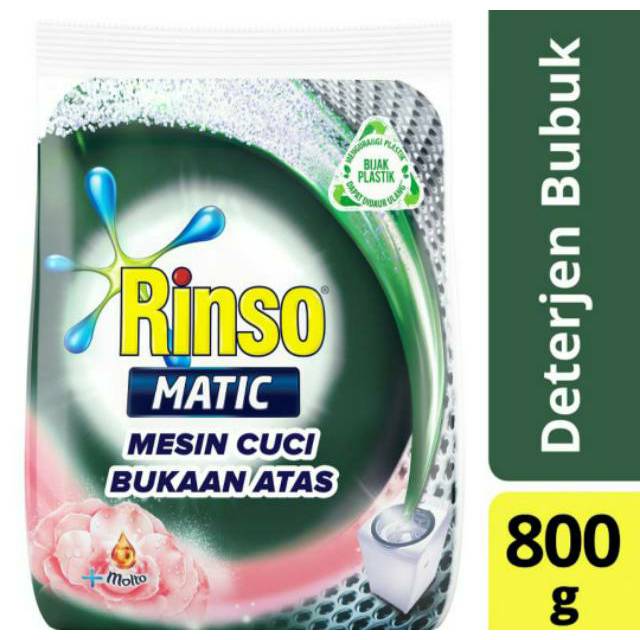 RINSO Matic Top Load Polybag 800gRINSO Matic Top Load Polybag 800g merupakan produk deterjen terbaru dari RINSO. Deterjen ini hadir dengan sarat deterjensi yang rendah, kadar alkalinitas dan enzim yang tinggi, namun memiliki busa yang rendah yang sangat cocok untuk penggunaan pada mesin cuci bukaan depan. Dengan kandungan 2x konsentrat dan karakteristiknya yang khusus mampu hilangkan noda pada pakaian Anda dengan menggunakan mesin cuci bukaan depan.Detail:- Jenis Produk: Deterjen- Brand: RINSO- Varian: Matic Front Load Polybag- Netto: 800g- 2x konsentrat- Menghasilkan busa yang melimp